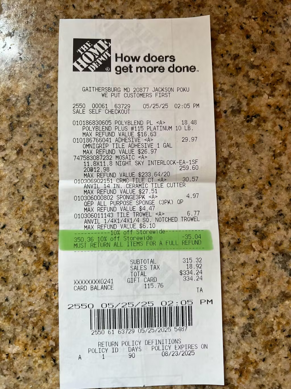 Great experience! I bought a 10% off Home Depot coupon. At first, I was hoping for a 15% or more, but this one worked perfectly. I was able to use it immediately and saved over $50 on my purchase. Super convenient and totally worth it—very happy with this deal!