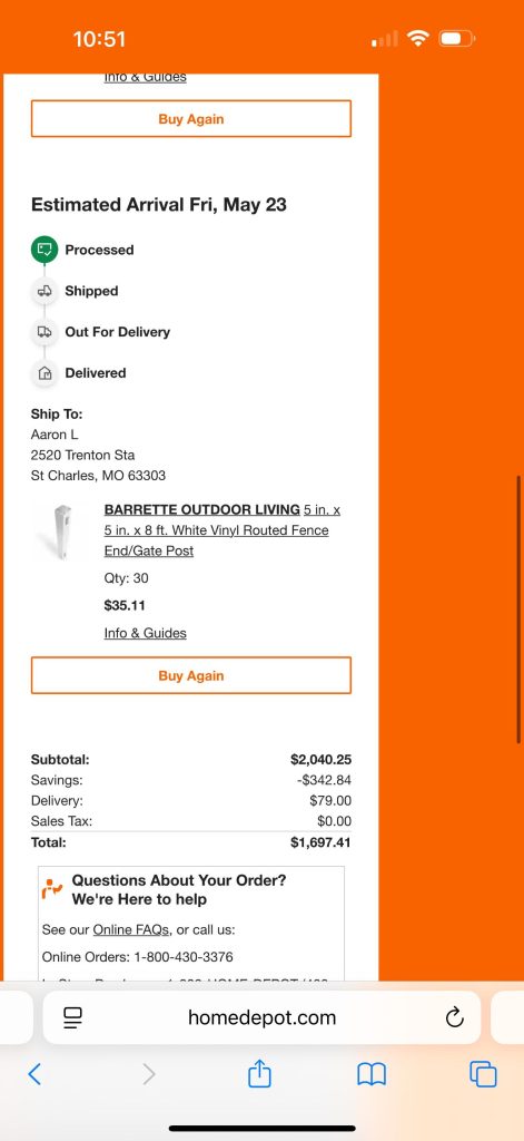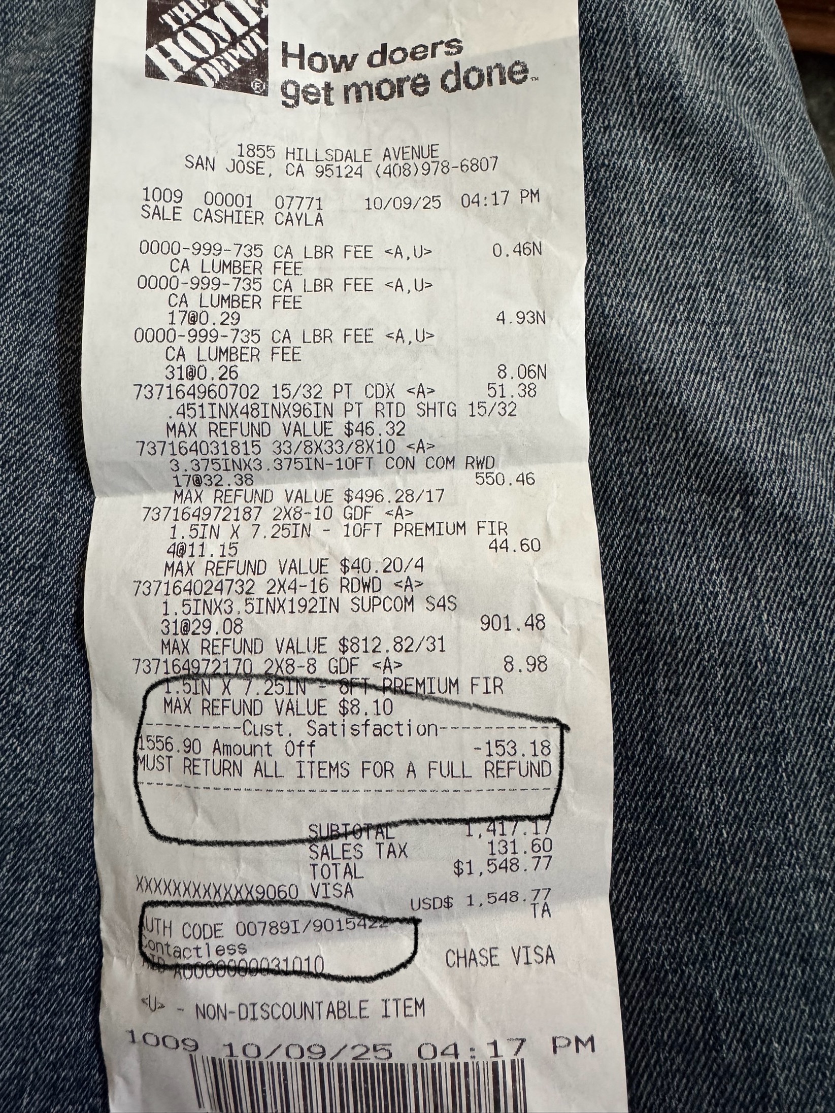 Love getting 10 percent off – Even able to do so from my iphone while at HD.