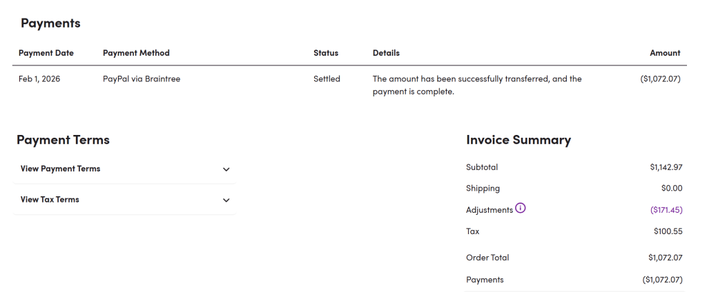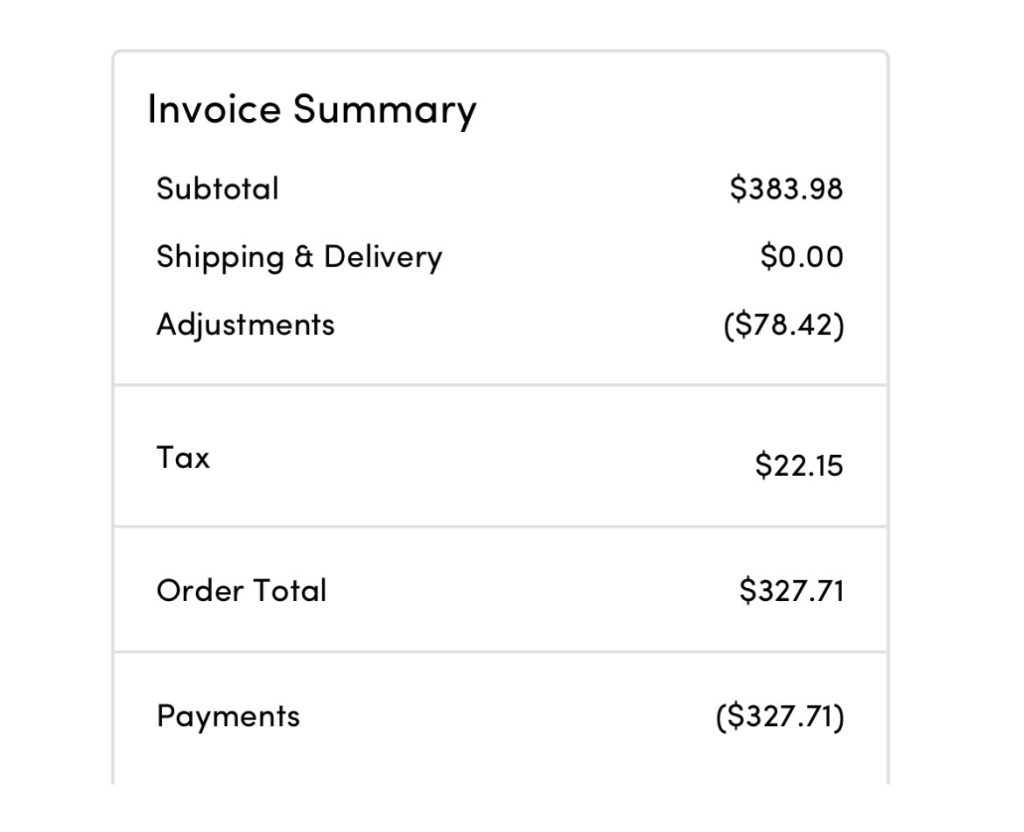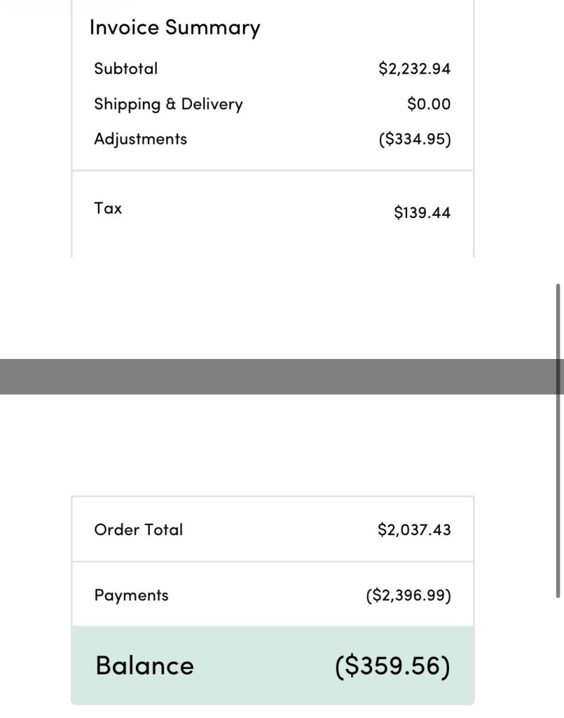 $2,396.99 was my original total – $359.56 refunded for coupon = $2,037.43 adjusted total.