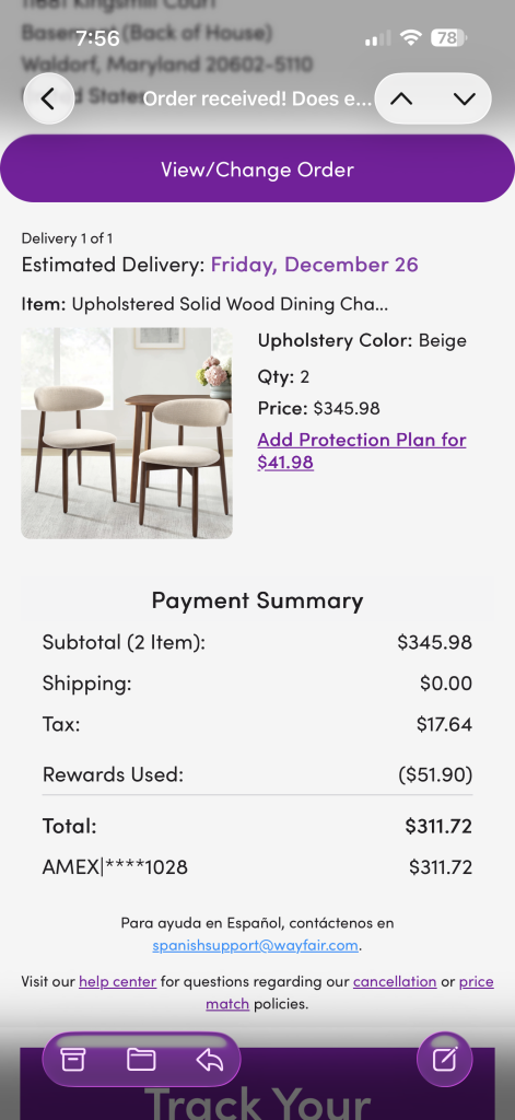 Saved BIG! Thanks to HDSavings Wayfair coupon.