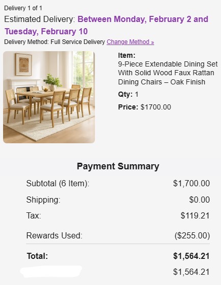 Absolutely thrilled with this coupon! I saved $200 on my new dining table set. Got the promo code within minutes and had no issues applying it. Highly recommended!